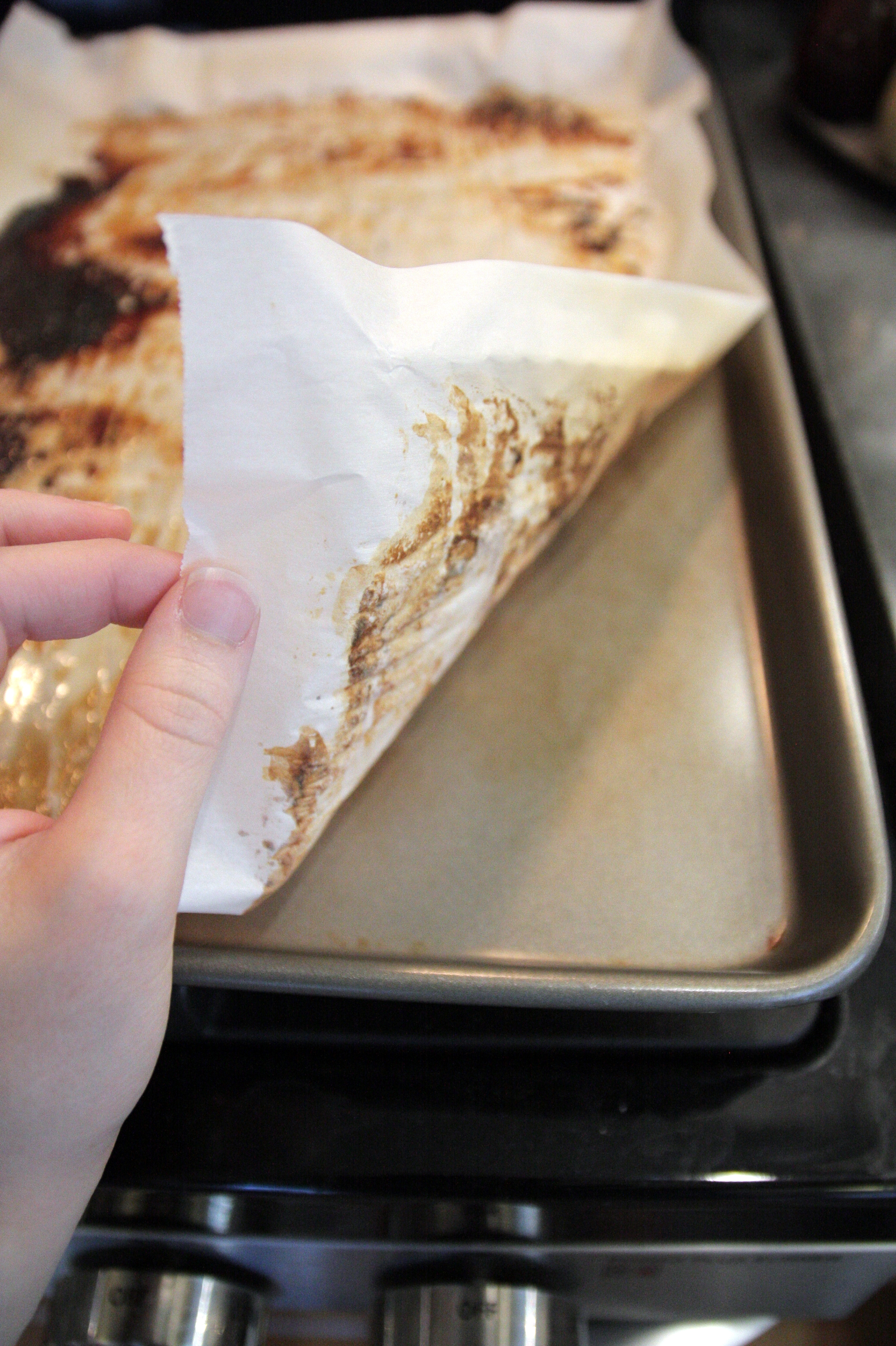 After you gobble up your bacon, let your parchment paper/pan sit for several hours. It’s a procrastinators dream. Come on, were you really going to wash that pan right away? Unless you are my friend Julie, probably not. (Love ya, Jules 😉 )